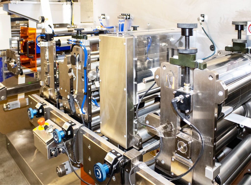 Symbology’s high-speed flexographic presses are equipped with 10+ color stations, and efficient in-line die-cutting. Engineered with high energy-efficient LED curing, our presses run faster with less downtime. Flexographic printing is recommended for large-volume jobs, precise color matching, unique substrates, multi-layer designs, including a variety of embellishments. Our expertly skilled operators are dedicated to delivering the highest-quality results on every work order.